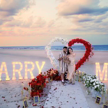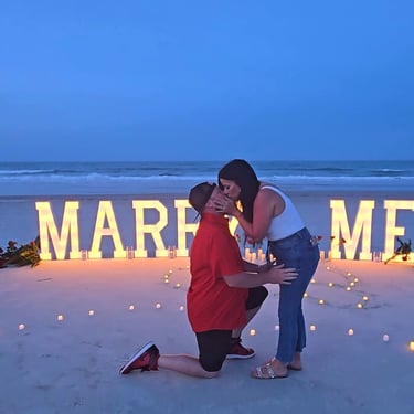 Our sunset proposal was breathtaking! The setup was stunning, and the photographer captured every moment beautifully. Highly recommend for anyone looking to propose on the beach.